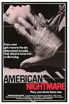 American Nightmare is a 1983 Canadian slasher film[1] directed by Don McBrearty and starring Lawrence Day, Lora Staley, Lenore Zann, Michael Ironside, and Alexandra Paul in her feature film debut. It tells the story of a successful pianist investigating the disappearance of his sister in an urban decadence as a serial killer targets prostitutes and sex workers. The screenplay by John Sheppard, based on a story by John Gault and Steven Blake, was influenced by the rising crime rates in American cities throughout the 1970s and early 1980s.