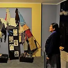 Mendoza standing next to effects belonging to Desaparecidos in the ANFASEP museum.