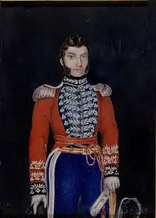 Michel-Louis Juchereau Duchesnay (1785–1838), youngest son of Antoine Juchereau Duchesnay. Shown either in the uniform of a Lieutenant in the King's Royal Rifle Corps or Captain in the Canadian Voltigeurs, circa 1808.