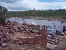 ![]() A brick home that was leveled by the tornado | |