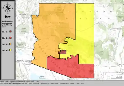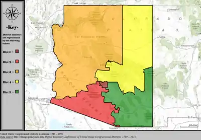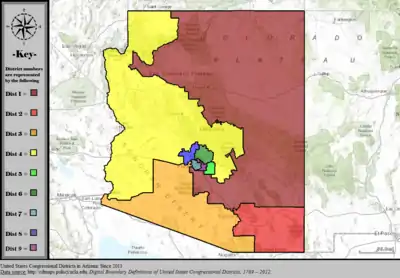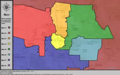 Table of United States congressional district boundary maps in the State of Arizona, presented chronologically.[3] All redistricting events that took place in Arizona between 1973 and 2013 are shown.