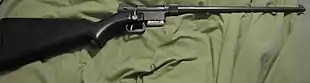 The U.S. Air Force needed a compact, lightweight, accurate rifle for the new XB-70 manned bomber aircrew's survival kits.[2] Since the M4 and M6 aircrew survival weapons were no longer in manufacture, the Air Force put out a request for a new survival weapon. Shortly after Fairchild established the ArmaLite division in 1954, ArmaLite designed and submitted the AR-5 in response. The Air Force officially adopted the AR-5 as the MA-1 in 1956.[3] Due to the cancellation of the XB-70 fleet, though, the Air Force never received funding to buy more than the original 12 test models. The M4 and M6 aircrew survival weapons already in inventory were judged to be sufficient for existing Air Force needs.[2][4][5] However, adoption of the MA-1 established ArmaLite as a recognized firearms company, leading to several other rifle designs of varying success (e.g., the AR-7, AR-10 and AR-15).[4]