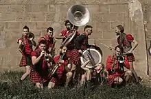 Artistas del Gremio is a Spanish fanfare-type music band, composed of brass and percussion instruments and performing music and street shows.[1] It was founded in Ejea de los Caballeros (Zaragoza) in 2005. Since then has toured the Iberian Peninsula and performed in several European countries and Ecuador.[2] They have participated in the soundtracks of a film and several television programs. They have recorded 4 albums and a documentary that show the evolution of the band.