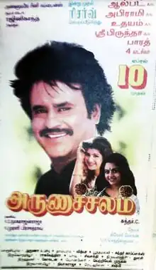 Arunachalam is a 1997 Indian Tamil-language masala film directed by Sundar C. and written by Crazy Mohan. The film stars Rajinikanth, Soundarya and Rambha, with Jaishankar, Ravichandran and Visu in supporting roles. It revolves around a village simpleton, who later discovers he is the heir of a deceased billionaire, but must go to great lengths to claim his father's inheritance.