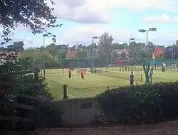 In 1926 the Ashby-de-la-Zouch Lawn Tennis Association Club changed its name to the Ashby Castle Lawn Tennis Club was formally incorporated on land it has purchased at Ashby Park that was part of Ashby De La Zouch Castle owned by the Hasting's family.[2] After which the tournament moved there. The new venue consisted if three grass courts and two red shale clay courts, and a wooden pavilion, with veranda plus a separate changing hut.[3]