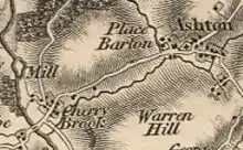 The manor was long the seat of the Chudleigh family, from about 1320 to 1745,[6] which originated at the manor of Chudleigh,[7] 3 miles south of Ashton, and for which was created the Chudleigh baronetcy in 1622. It was Sir George Chudleigh who was the 1st Baronet during the English Civil War and sided with Parliament first and then with the Royalists later on. Ashton became the birthplace of a long line of Chudleigh family members.[8]