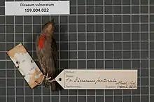 1. BirdLife International (2018). "Dicaeum vulneratum". IUCN Red List of Threatened Species. 2018: e.T22717540A131976361. doi:10.2305/IUCN.UK.2018-2.RLTS.T22717540A131976361.en. Retrieved 12 November 2021.