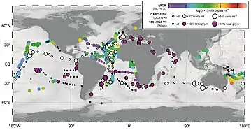 13. Moisander PH, Beinart RA, Hewson I, White AE, Johnson KS, Carlson CA, et al. (March 2010). "Unicellular cyanobacterial distributions broaden the oceanic N2 fixation domain". Science. 327 (5972): 1512–1514. Bibcode:2010Sci...327.1512M. doi:10.1126/science.1185468. PMID 20185682. S2CID 206524855.