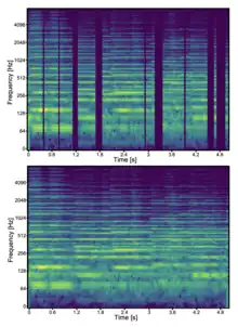 Audio inpainting (also known as audio interpolation) is an audio restoration task which deals with the reconstruction of missing or corrupted portions of a digital audio signal.[1] Inpainting techniques are employed when parts of the audio have been lost due to various factors such as transmission errors, data corruption or errors during recording.[2]