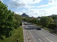 The town is dominated by two features. The steep hill of Bořeň is a large phonolite hill, dominating the town and its surroundings. It lies on the southern municipal border and is the highest point of the town at 539 m (1,768 ft) above sea level. It lies in the eponymous national nature reserve.[3][4] The second feature is the giant lignite mine Bílina which seriously changed and damaged surrounding landscape.