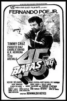Batas ng .45 (lit. 'Law of the .45') is a 1991 Filipino action film directed by Fernando Poe Jr. (under the pseudonym Ronwaldo Reyes) who also stars in the film along with Timmy Cruz, Paquito Diaz, Charlie Davao, R.R. Herrera, and Tito Arevalo. The film was produced and released by Chiba Far East Film International on May 30, 1991.