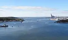 Two of the Gothenburg Squadron's frigates, the Fredericus and the Halmstad had been leased to the Gathenhielm privateers. The Halmstad was equipped, but undermanned. These two frigates as well as an additional two from Nya Varvet, formed a blockade in Göta älv between Nya Varvet and Rya Nabbe. Strömstierna supplied the vessels with barricades so as to prevent the Danes from boarding them.[19] Additionally, Nya Älvsborg fortress had been reinforced with a crew of 400 soldiers and 90 cannons. The two cannon batteries Lilla Billingen and Rya Nabbe, with 12 heavy cannons each had been manned with infantry from the Saxon Infantry Regiment led by Colonel G.D Zengerlein. In addition, the Småland Regiment as well as an elite unit, the Grenadier Battalion led by Johan Clausen, which composed of handpicked grenadiers from different units, were assigned to man the forts. In total, there were around 1000 Swedish soldiers and 200 cannons at the rivermouth of Göta älv.[20]