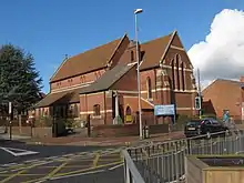 St Mary's Church of England parish church stands at the junction of Bearwood Road and St Mary's Road. The parish was originally part of the parish of St Peter's, Harborne.[20] The red-brick building was designed by Julius Alfred Chatwin and dates from 1887. The adjacent hall was built in 1897 and extended in 1994.[21]