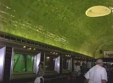 The Belle Isle Aquarium is a public aquarium located in Belle Isle Park in Detroit, Michigan. Designed by noted architects George D. Mason and Albert Kahn,[5] it opened on August 18, 1904, and was the oldest continually operating public aquarium in North America when it closed on April 3, 2005.[2] The aquarium reopened to the public on August 18, 2012, and is now run entirely by Belle Isle Conservancy, a 501(c)3 non-profit partner to Belle Isle park.[6] The 10,000-square-foot (930 m2) historic building features a single large gallery with an arched ceiling covered in green glass tile to evoke an underwater feeling.[1][7]