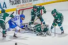 The Beavers opened WCHA play in the new Bemidji Regional Events Center on October 15, 2010 against North Dakota in a 2-5 loss.[24] Bemidji picked up their first WCHA win at St. Cloud State 3-2 in overtime.[24] Bemidji ended the regular season with a conference record of 8-15-5 as the 10th seed entering the 2011 WCHA Tournament. In the first round of the WCHA playoffs the Beaver beat 3rd-seeded Nebraska-Omaha two games to none with 4-3 and 4-2 wins.[25] The series sweep sent Bemidji to its first ever WCHA Final Five and upset Minnesota–Duluth 3-2 in overtime,[26] before losing to Denver 2-6 in the semifinal game.[27]
