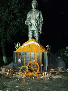 Hazarika was hospitalized in the Kokilaben Dhirubhai Ambani Hospital and Medical Research Institute in Mumbai in 2011.[28][29] He was admitted to the intensive care unit on 30 June 2011. He died of multi-organ failure on 5 November 2011.[30][31][32] His body lay in state at Judges Field in Guwahati and cremated on 9 November 2011 near the Brahmaputra River in a plot of land donated by Gauhati University. His funeral was attended by an estimated half a million people.[33][34]