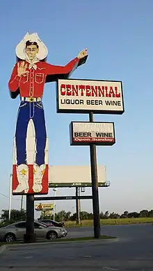 - ↑ Laughlin, Jamie (May 7, 2013). "AMC Needed Centennial Liquor's Neon Tex for its New Pilot, So it Gave Him a Makeover". Dallas Observer. Retrieved August 22, 2018.