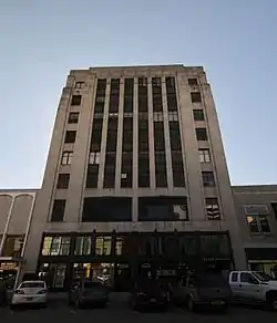 The Black Building at 114-118 Broadway in Fargo, North Dakota was a "pivotal" historic resource in the Downtown Fargo District, in the listing of that historic district upon the National Register of Historic Places. In 2016 it was also individually listed on the National Register, as its "owners chose to pursue the honor of individual listing for its architecture and for its association with George Mumford Black and his strategies in commerce and communications. Black had the upper floor of the Art Moderne building designed for WDAY (AM) radio and ensured the station signed off each show with “this is WDAY with from the Black Building, Fargo” and he is credited with creating the one-cent sale."[1]