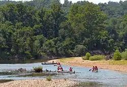 A U.S. Army Corps of Engineers dam in Wayne County, Missouri, causes the river to form Clearwater Lake.