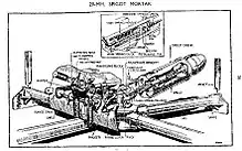 It would appear that a number of Bombards saw action with the British Army, being used in an anti-personnel role in the Western Desert Campaign, although their use may have been limited due to their weight.[14] The design of the Bombards was the basis for the Royal Navy anti-submarine weapon known as the Hedgehog.[9]