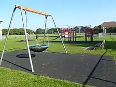 The name "Blackfields" was originally applied to an area of countryside near the village of Fawley, and there is still a Blackwell Common next to Blackfield.[1] The name presumably derives from the soil colour, some of which is marshy and black.[1] The settlement of Blackfield began in the late 19th century when, at first mud cottages, and then later, small red-brick houses were built in the area of moorland once known as Hugh's Common.[2] It was close to the small village of Langley.