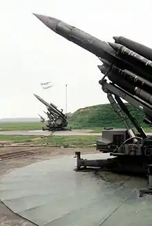 - ↑ Beam riding missiles have the disadvantage of not being able to "lead" their target unless a second radar beam is used, as in Nike Ajax. They also have the problem that radar signals spread out with increasing distance, making the missile increasingly inaccurate at longer ranges. Which of these two issues, or possibly both, is the reason for this switch is not mentioned in available sources.