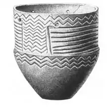 A characteristic of Early Neolithic depositions is the placing of earthenware vessels near to the banks of a lake, something which may have parallels in the latter part of the preceding Mesolithic Ertebølle culture.[9] This tradition was carried out for around a thousand years, from c.4000 BCE to shortly before 3000 BCE, when the practice largely died out.[9] Archaeological analysis of burnt remains of food on the inside of some of the earthenware funnel beakers from this period reveals that they contained a fish soup, although traces of acorn have also been identified. It is unclear whether these earthenware items were actually deposited in the water with food in them, or whether this had been consumed or otherwise removed beforehand.[9]