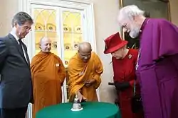 As well as serving as the Chief Bhikku of the London Buddhist Vihara, Ven Seelawimala Nayaka Thera serves as a trustee of the Inter-Faith Network UK, Director of the Heathrow Multi-Faith Chaplaincy Board, the Buddhist Chaplain of the West Middlesex University Hospital and at the Ealing Hospital. He is also the Chief of Sri Lankan Sangha Council in Britain,[3] Buddhist representative at UK and Commonwealth Remembrance Day Ceremony and at the Commonwealth Day Ceremony at Cenotaph.[4] Bogoda Seelawimala Nayaka Thera is the first Buddhist monk to be invited to a royal wedding in Britain[5][6] and he attended to the Queens' diamond jubilee as well. It was in the St Paul's Cathedral on 5 June 2012.