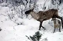 - ↑ Bergerud, A. T.; Page, R. E. (1987). "Displacement and dispersion of parturient caribou at calving as antipredator tactics". Canadian Journal of Zoology. 65 (7): 1597–1606. doi:10.1139/z87-249.