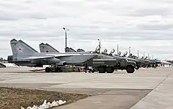 ![]() Sukhoi Su-27 and Mikoyan MiG-31 of the 790th Fighter Aviation Regiment at Khotilovo. | |||||||