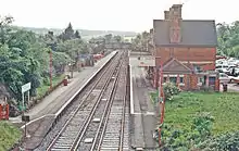 Wrotham station opened on 1 June 1874, as part of the Maidstone Line from Swanley to Maidstone.[1] The station was initially named after Wrotham, which lies 1 mile (1.6 km) to the north. The station was later renamed Wrotham & Borough Green, and then Borough Green & Wrotham as Borough Green grew in size relative to Wrotham.[2] The goods yard had three sidings. One of them served a goods shed, another extended northwards to serve a Ragstone quarry.[3] A 5-ton capacity crane was provided.[4] Freight facilities were withdrawn on 9 September 1968.[5] East of the station, there was a private siding at Platt,[6] and a public siding at Offham. This closed on 6 September 1961.[2]