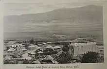 The village of Borzesti in 1904. In the foreground Borzești Church and in the far plan the field of the future industrial complex
