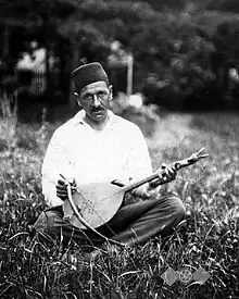 Bosniak epic poetry, just like the epic poetry of other Southern Slavs, was accompanied by the Gusle (Lahuta in Albanian). Kosta Hörmann mentions in his collections of epics from the territory of Bosnia and Herzegovina during Austro-Hungarian times that he "recognized joy when his Muslim hosts got lost in Gusle made from maple, after which a sonorous howl came from the singer's ringing throat. Songs about heroism and good horses".[22] Milman Parry and Albert Lord also recorded many epic songs that were accompanied by the Gusle in their journeys through Bosnia, Herzegovina, and Montenegro.[23]