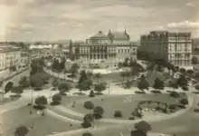 In 1897, José Roberto da Cunha Salles directed Ancoradouro de Pescadores na Baía de Guanabara, considered to be the first film in the history of Brazilian cinema.[24] In 1909, the Municipal Theater of Rio de Janeiro, one of the greatest symbols of the Belle Époque in the city, was inaugurated. Later, the entire Cinelândia complex, where the theater is located, was reconfigured with the installation of the Monroe Palace and several cinemas (Cine Odeon, Cineac Trianon, Parisiense, Império, Pathé, Capitólio, Rex, Rivoli, Vitória, Palácio, Metro Passeio, Plaza and Colonial).[25][26]