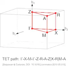 - ↑ Setyawan, Wahyu; Curtarolo, Stefano (2010). "High-throughput electronic band structure calculations: Challenges and tools". Computational Materials Science. 49 (2): 299–312. arXiv:1004.2974. Bibcode:2010arXiv1004.2974S. doi:10.1016/j.commatsci.2010.05.010. S2CID 119226326.