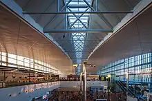 Inside the international terminal, there are 40 check-in counters, 12 emigration counters, and 14 immigration clearance counters.[1] Concessionary traders inside the terminal include Burger King and KFC international fast-food outlets,[7] Jollibee regional fast food,[7] plus local 'concept stores' which include food, tea and coffee drinks, and jewellery stores, along with Avis car rental desk.[1]