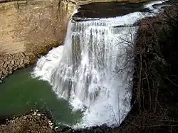 Burgess Falls State Park is a state park and state natural area in Putnam County and White County, Tennessee, located in the southeastern United States. The park is situated around a steep gorge in which the Falling Water River drops 250 feet (76 m) in elevation in less than a mile, culminating in a 136-foot (41 m) cataract waterfall.