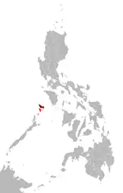 Map showing the Calamian Group (in red) and Busuanga Island (in maroon)