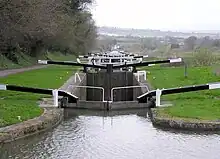 Caen Hill Locks (/ˈkn ˈhɪl/[1]) are a flight of 29 locks on the Kennet and Avon Canal, between Rowde and Devizes in Wiltshire, England.
