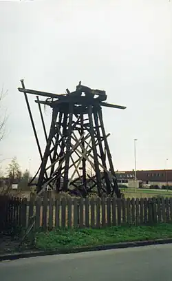 The Camminghabuurstermolen was built in 1850. In 1943, the mill was equipped with Patent sails of 17.00 metres (55 ft 9 in) span.[1] The mill worked by wind until 1947 when a 12 horsepower (8.9 kW) electric motor driving an Appold turbine replaced the Archimedes' screw. The mill then became derelict, but was bought for ƒ5 by the Gemeente Leeuwarden in 1958. It was restored by millwright de Roos of Leeuwarden. The sails were removed in the early 1990s. On 11 May 1994, the mill was subject to an arson attack and was burnt out.[2] The cost of restoring the mill was estimated at between 5 and 10 million Guilders.[1] The windshaft and brake wheel had been removed by 1998.[3] The mill was demolished in 2000.[1] Parts from this mill were used in the restoration of the Slagdijkstermolen, Finkum.[4] The windshaft was used in the restoration of De Babuurstermolen, Tjerkwerd.[1]