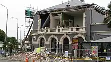 Carlton Hotel suffered damage in the 2010 Canterbury earthquake, but remained open. It was heavily damaged in the subsequent earthquake on 22 February 2011, when part of the façade facing Papanui Road collapsed. Engineers found that the building was prone to failure in another strong aftershock, and it was demolished on 9 April 2011.[5][6] The building's owner has replaced the building with a modern structure,[7] but the new complex has been criticised as "unsympathetic".[8]