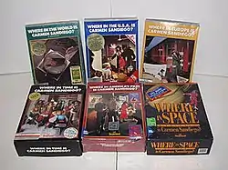 Carmen Sandiego is a series of American educational mystery video games that spawned an edutainment franchise of the same name. The game released in 1985, Where in the World Is Carmen Sandiego?, started off both the video game series and the franchise as a whole, which has continued up to the present day. Each game of the series has a particular theme and subject, where the player must use their knowledge to find Carmen Sandiego or any of her innumerable henchmen. This series was originally owned by Broderbund, but is now owned by Houghton Mifflin Harcourt. Since its initial release the series has won over 125 awards and accolades.[1]