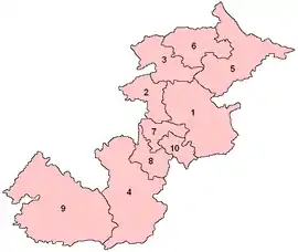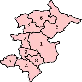 The constituencies were created in 1999 with the names and boundaries of Westminster constituencies, as existing in at that time.[2] They cover all of two council areas,[3] the Falkirk council area and the North Lanarkshire council area, and parts of three others, the East Ayrshire council area, the East Dumbartonshire council area and the South Lanarkshire council area.