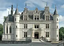 In 1535 the château was seized from Bohier's son by King Francis I of France for unpaid debts to the Crown. After Francis' death in 1547, Henry II offered the château as a gift to his mistress, Diane de Poitiers, who became fervently attached to the château along the river.[8] In 1555 she commissioned Philibert de l'Orme to build the arched bridge joining the château to its opposite bank.[5] Diane then oversaw the planting of extensive flower and vegetable gardens along with a variety of fruit trees. Set along the banks of the river, but buttressed from flooding by stone terraces, the exquisite gardens were laid out in four triangles.