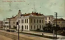 In 1832, a fifth hospital was built on Common Street (modern Tulane Avenue) between Howard Street (modern LaSalle Street), Robertson Street, and Gravier Street, on the edge of the Faubourg St. Marie.[4] This hospital came under the administration of the Sisters of Charity in 1834,[5] who would run the hospital for the next century.