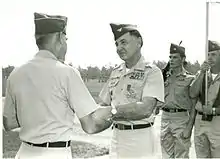 Murray being congratulated at his military retirement ceremony at Fort Jackson on July 30, 1973