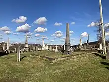 The Christ Church cemetery is located directly northeast of the church and is surrounded by an iron picket fence. Notable burials in the cemetery include Thomas Brown, the founder of Brownsville, and two cousins of George Washington: John H. Washington and Archibald Washington.[1]