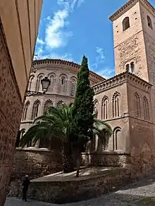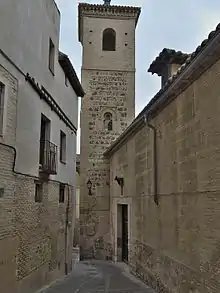 The oldest part of the church is the tower, now incorporated in the nave of the Gospel, but originally external. Its medieval condition was exposed during a restoration campaign in 1940. It is modeled directly from a Muslim minaret, as in the church of Santiago del Arrabal with which it has obvious similarities: