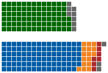 | 2000 election | 8 | — | 77 | — | 107 | — | — | — | — | 1 | — | 3 | 4 | 200 |