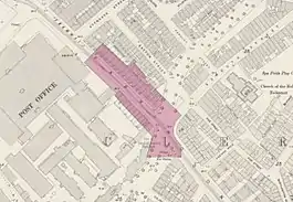 In November 1910, the MR submitted a private bill to parliament that included plans to construct a new station at Mount Pleasant.[1] The station would have been 60 feet (18 m) below ground. Parliamentary approval for the station was granted in the Metropolitan Railway Act 1911; however, the powers were not used and they lapsed in 1932.[2]